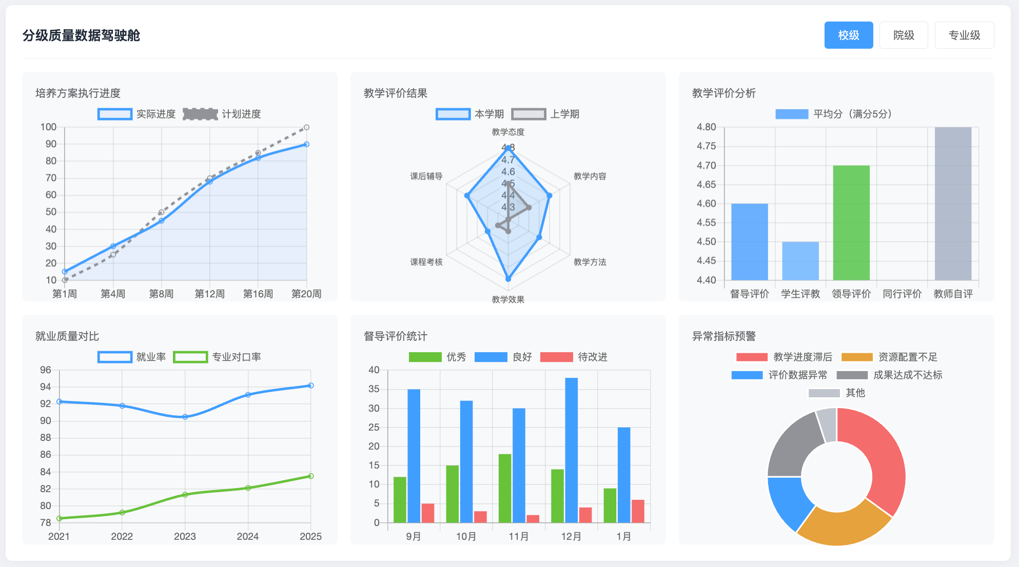 - 校-院-专业三级质量数据驾驶舱,实时监控核心指标